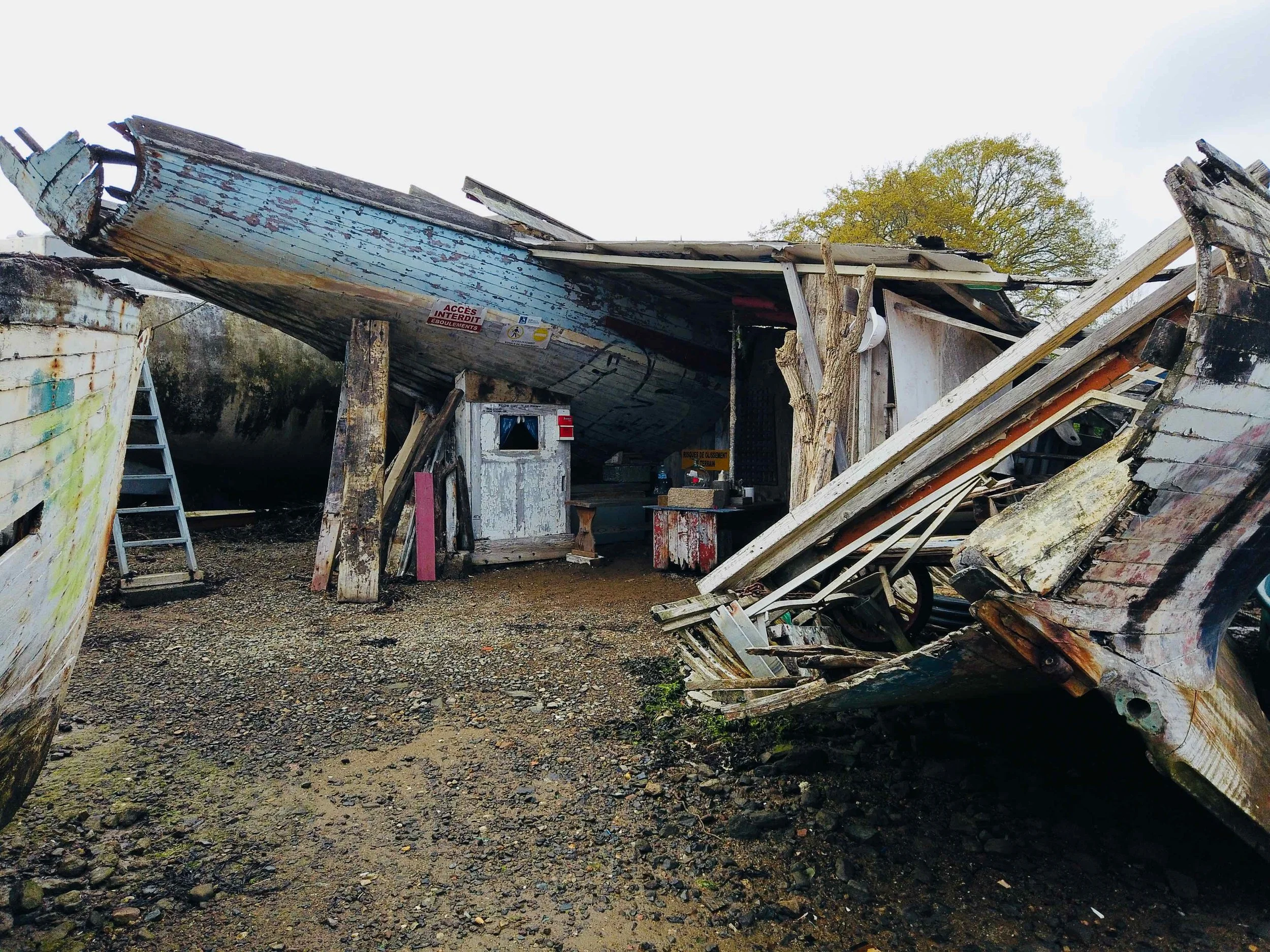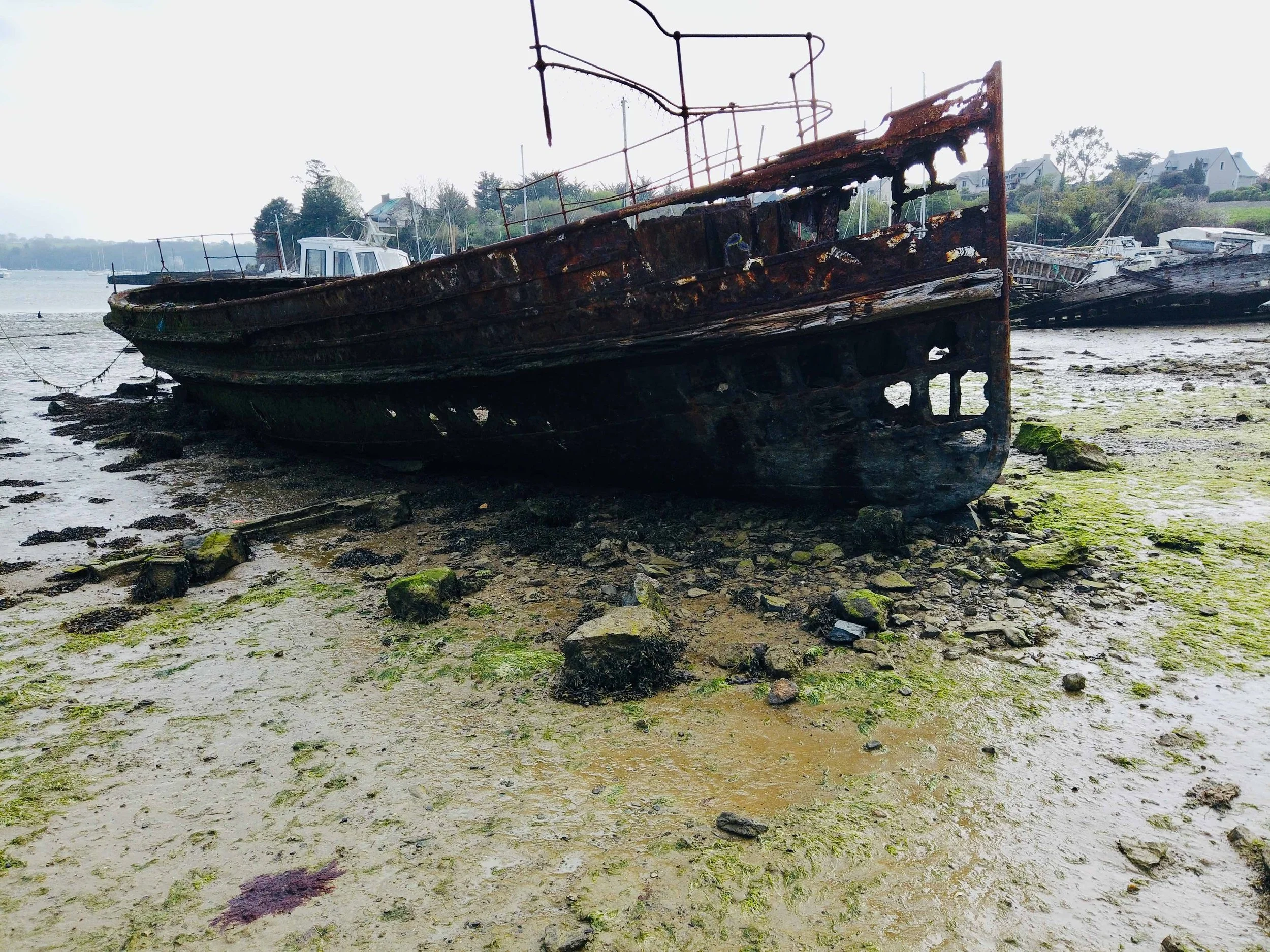 Il y a un charme étrange dans ces carcasses à ciel ouvert. Entre algues, bois usé et rouille, j’y trouve une beauté imparfaite. On ressent le poids du temps, les histoires de marins, de cabanes de passeurs, de chantiers navals… Une poésie douce-amère, typiquement bretonne.