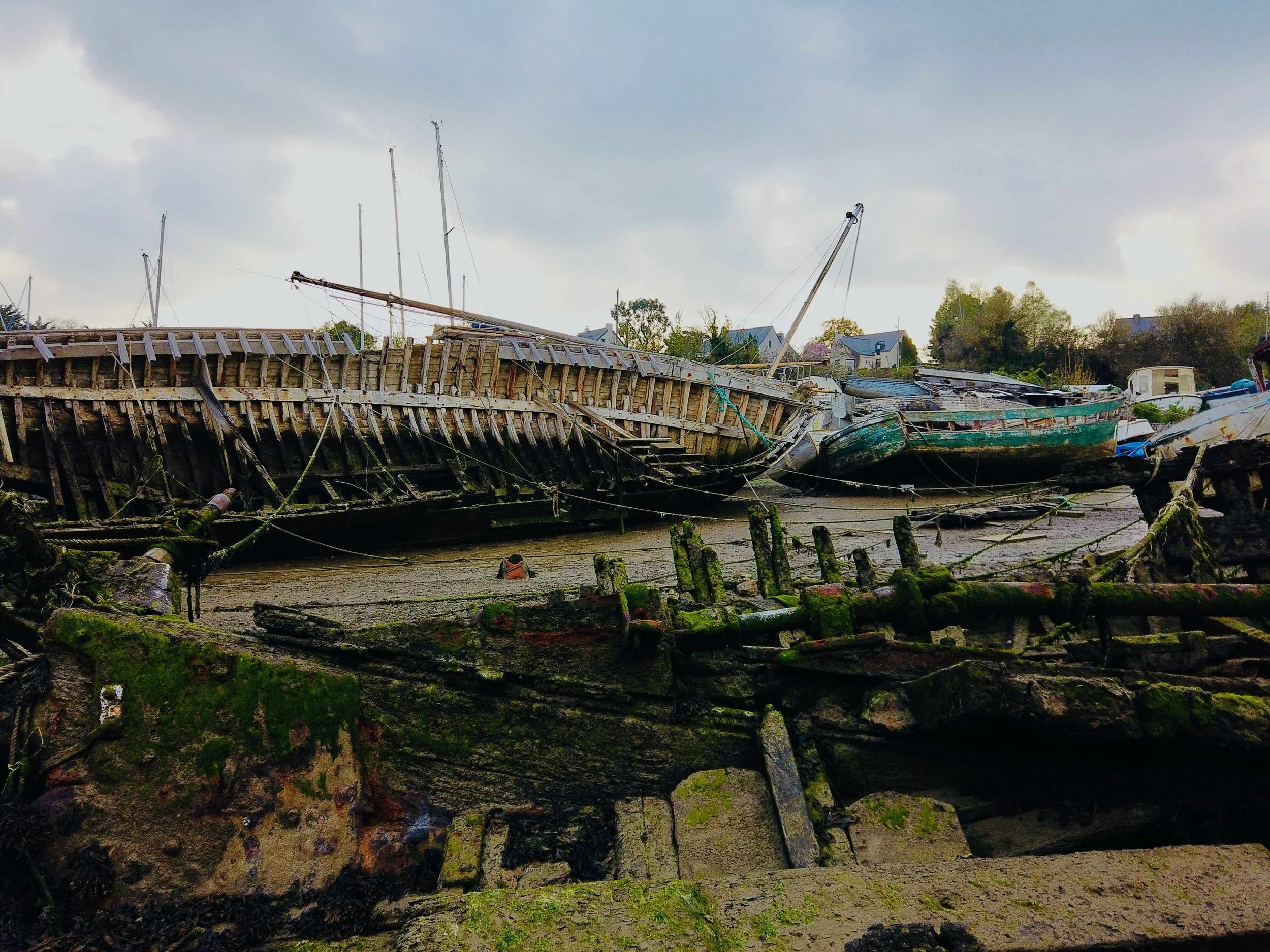 Le cimetière de bateaux de Quelmer, c’est un peu comme un secret de marins, posé le long de l’estuaire de la Rance. À marée basse, les carcasses oubliées ressortent de l’eau et de la vase, presque comme si elles prenaient le temps de respirer après des années flottantes. Il y en a une quinzaine, des vestiges en bois, en acier. Des formes fissurées que la mer a rongées, que le sel plie et que le temps efface doucement.