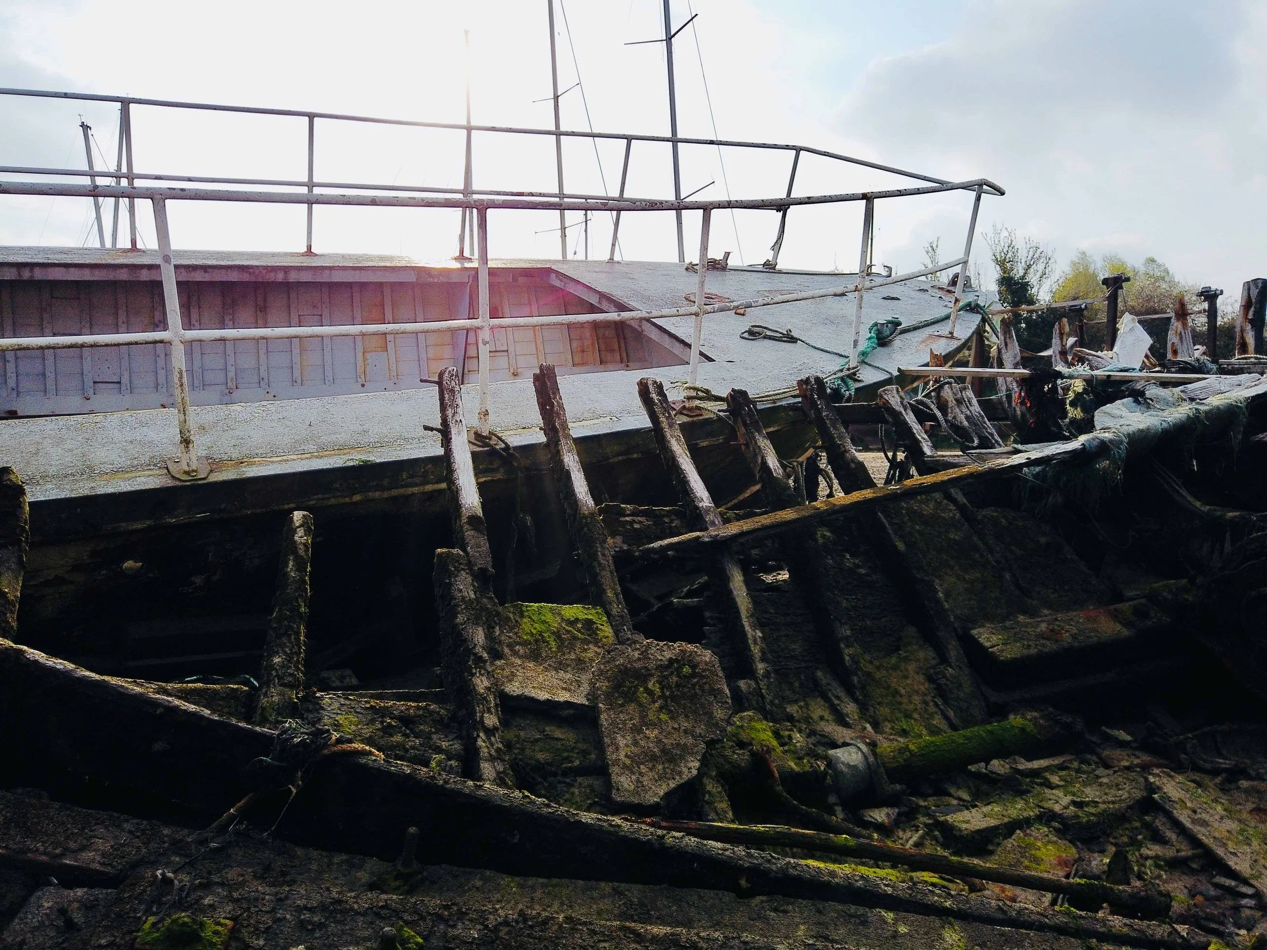 En avril 2019, par une journée bien bretonne, une amie m’a entrainé du côté de Saint-Malo, jusqu’à l’anse de Quelmer. Là-bas, elle m’a fait découvrir un de ses petits lieux magiques dont elle a le secret, un cimetière de bateaux. Un lieu fascinant où reposent une quinzaine d’épaves échouées dans la vase, témoins silencieux de l’histoire maritime locale.